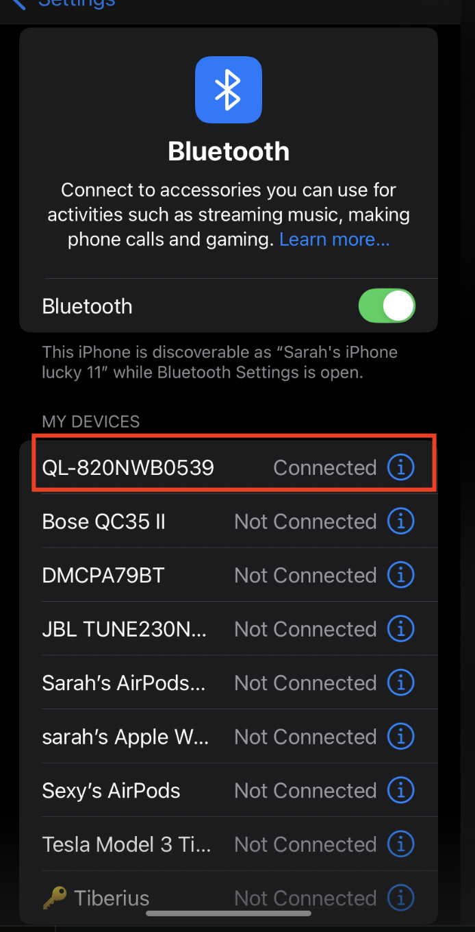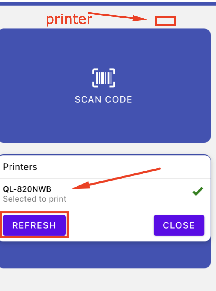 You should see this screen - printers list - click refresh to search printers connected to Bluetooth.