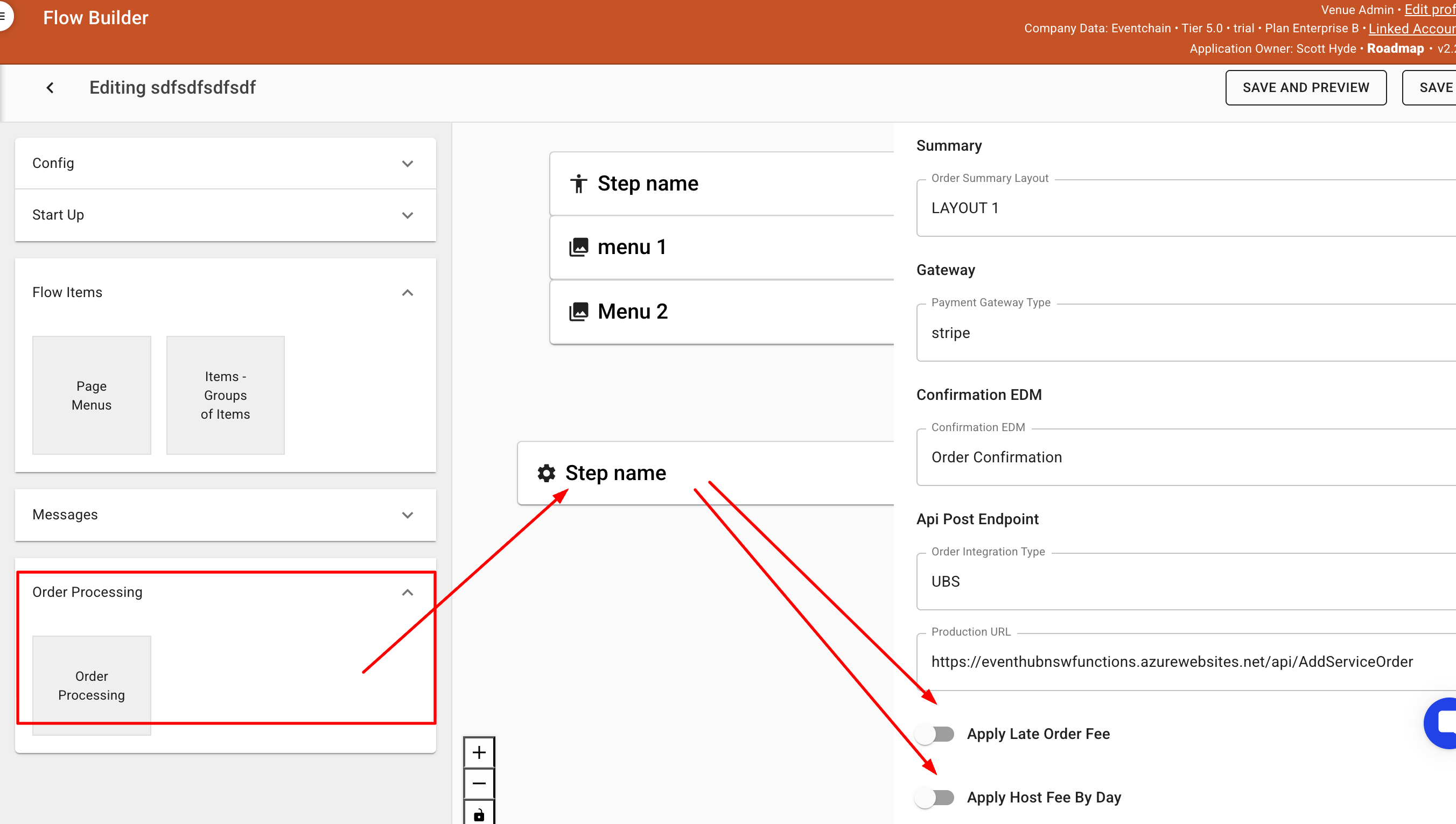 Its a toggle via the order processing step to turn on Late fees and host fees.